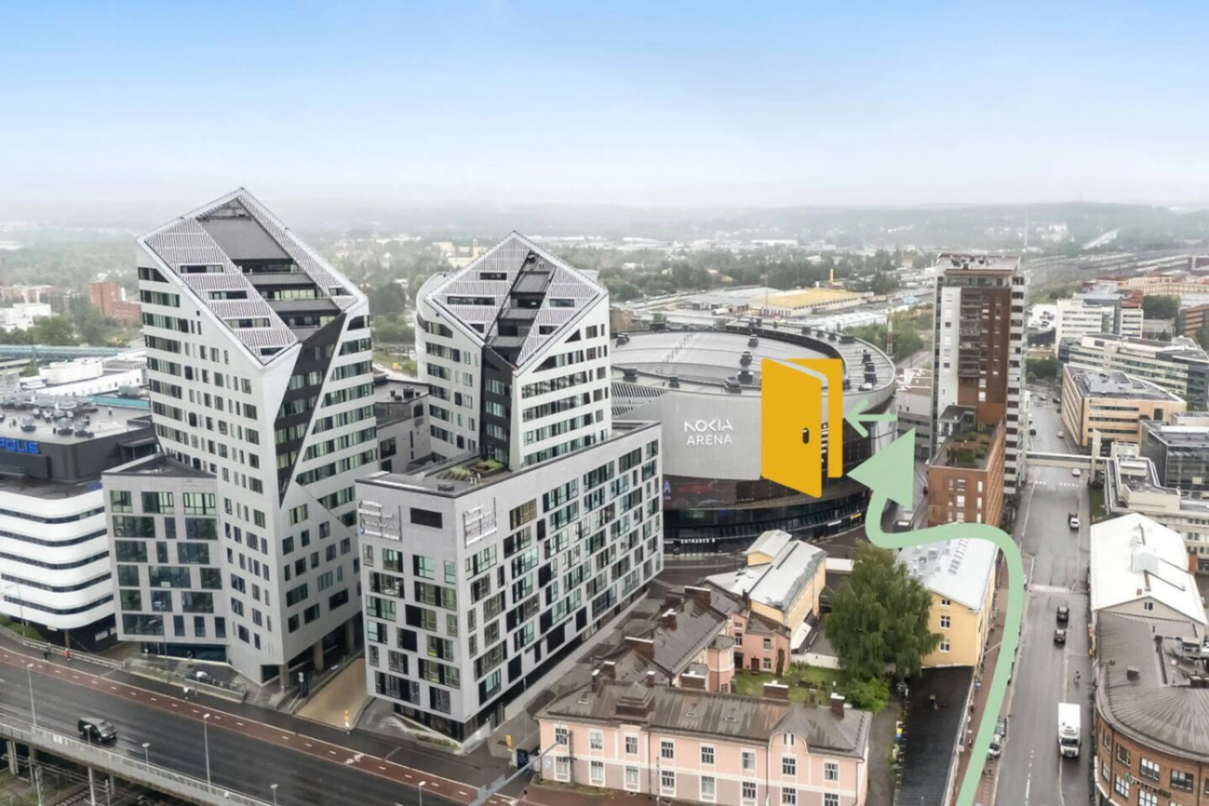 Positive: Sijainti oli loistava, kun käytti Nokia Arenan palveluita. Lapset oli huomioitu syöttötuolilla ja matkasängyllä. Viisihenkinen perhe mahtui majoittumaan hyvin!