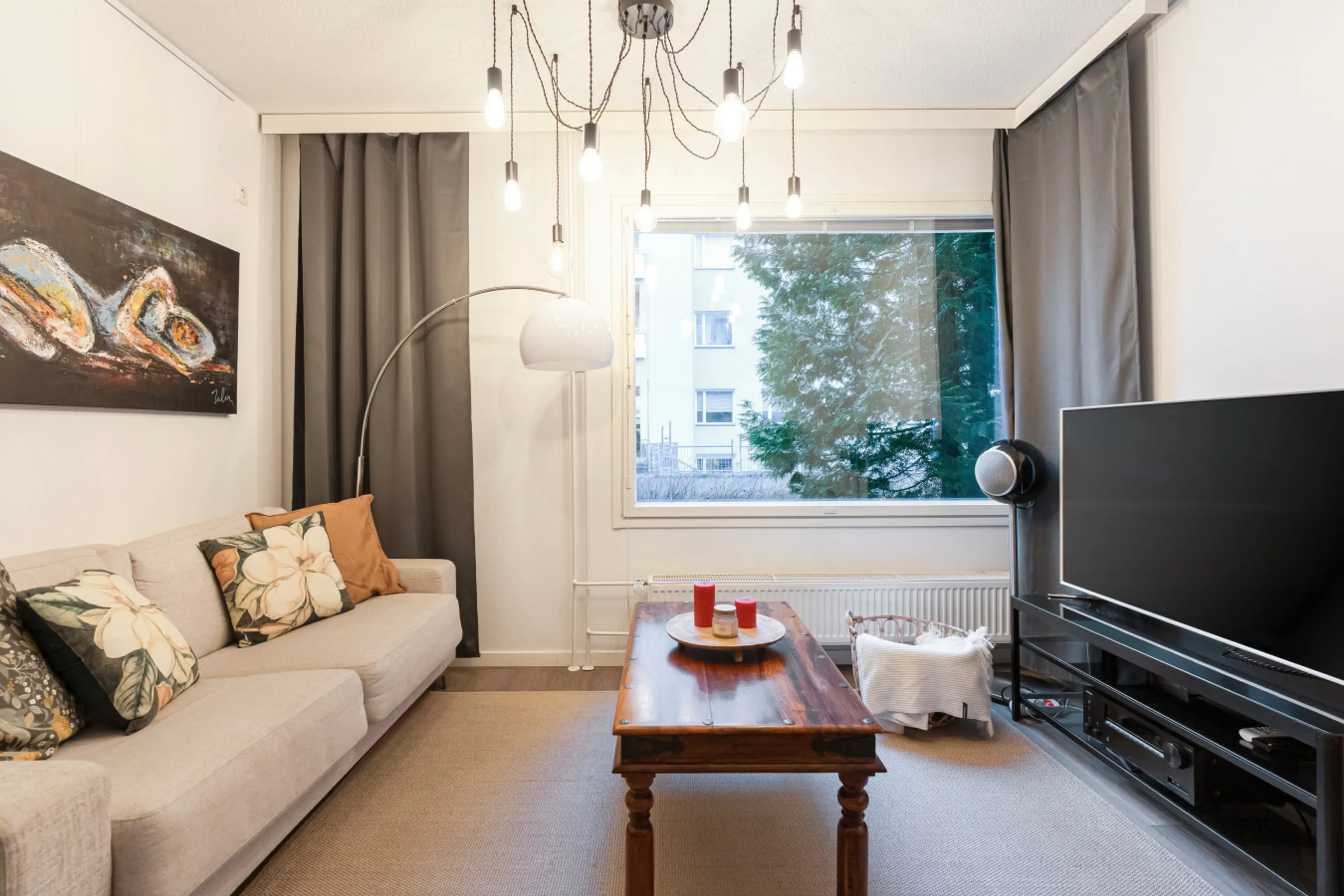 Negative: Huoneisto on todella pieni ja ahdas kerrostaloasunto, jossa on yksi oikea parisänky. Mikäli sinä ja ystäväsi tarvitsette toisen vuoteen, on mahdollista käyttää erittäin heikkolaatuista levitettävää vuodesohvaa, joka sulkee koko olohuoneen. Vuodesohva on nariseva, heppoinen ja sen petarista löytyi outoja mustia läiskiä. Pyyhkeet haisivat todella pahalle ja puhtaista lakanoista löytyi myös haaleita tummia läiskiä jotka voisivat olla esim meikkiä. Olohuoneessa vähätkin tilat oli viemässä myös valtavat kuvausvalaisimet, joissa luki ettei niihin saa koskea. Mikään ei viittaa luksukseen. Ilmainen pysäköinti tarkoittaa kadunvarressa yleisiä 2h pysäköintikiekollisia taskuparkkeja. Lähin pidemmän ilmaisen pysäköintimahdollisuuden paikka löytyy puolen kilometrin päästä scandicin toiselta puolelta.