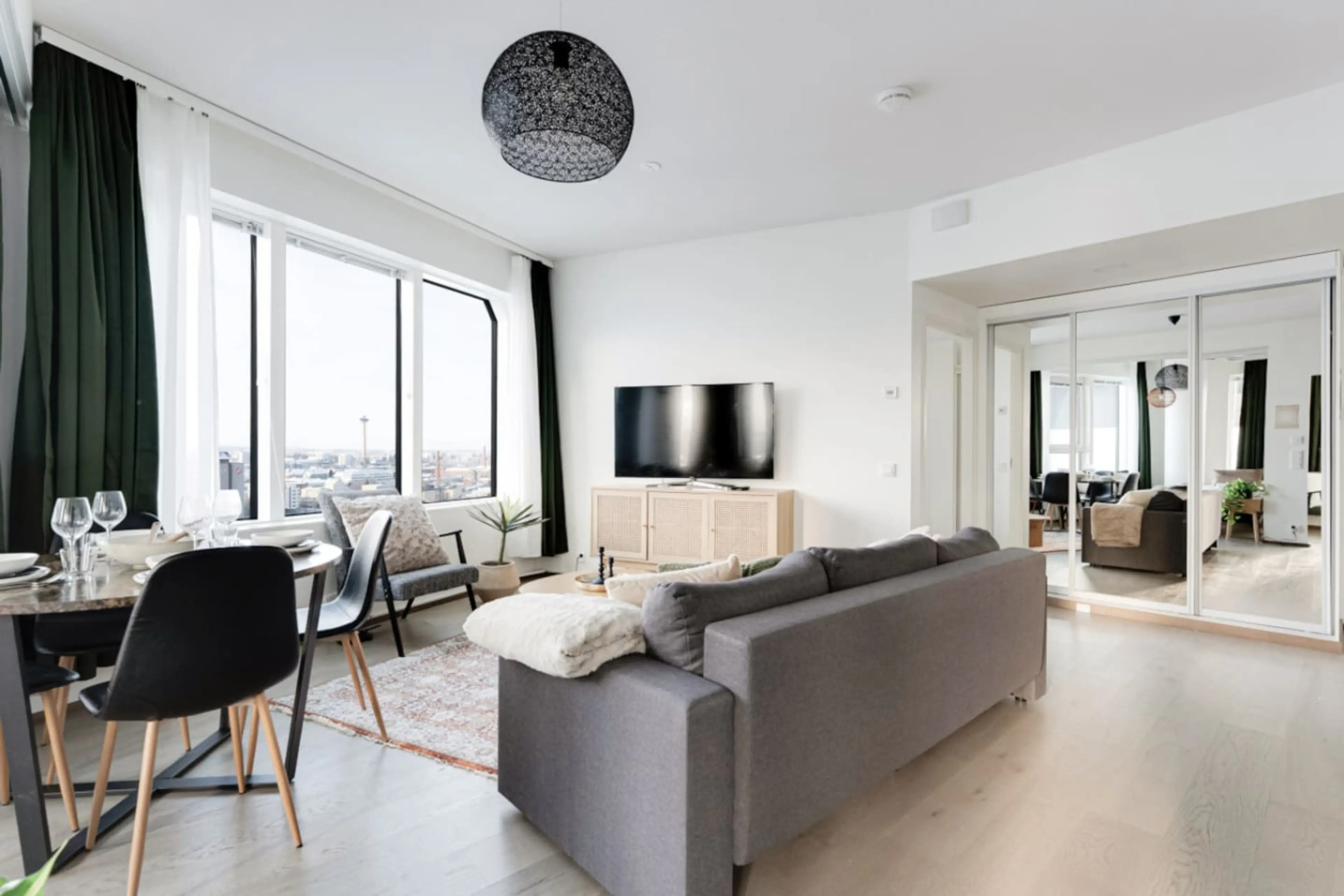 Spacious 13th floor apartment with private sauna and stunning views over Tampere. The apartment features a well-equipped kitchen, fast Wi-Fi, laundry facilities, and other amenities suitable for both short and longer stays. Are you visiting Tampere for work or just a quick trip? Whatever your reas...